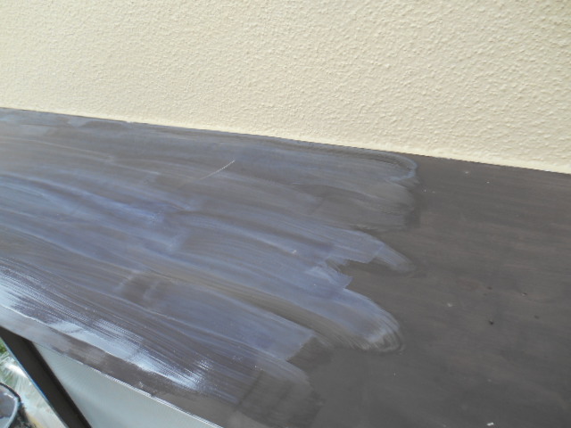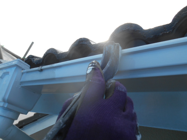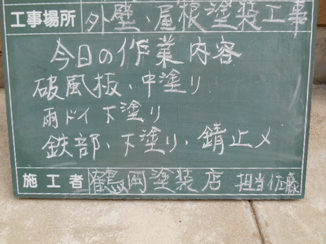 きょうは、破風板の中塗り。雨樋の下塗り。鉄部の下塗り。錆止めです。下屋根の下塗りです!