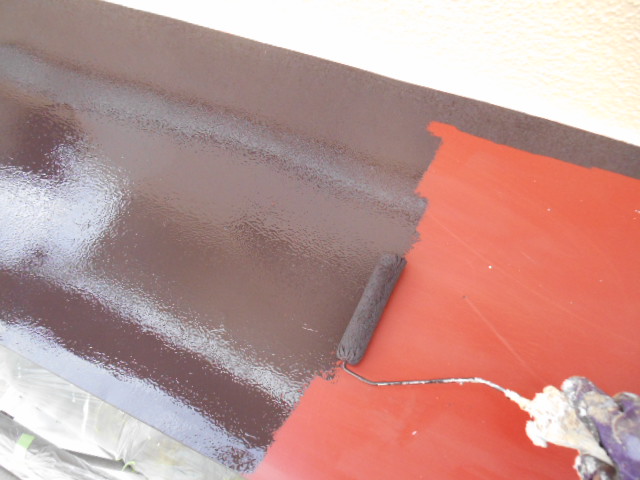 破風板が終わり、つぎに下屋根の中塗りをします!