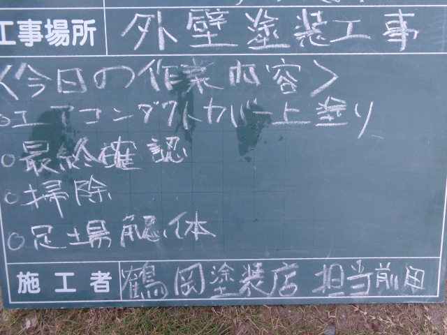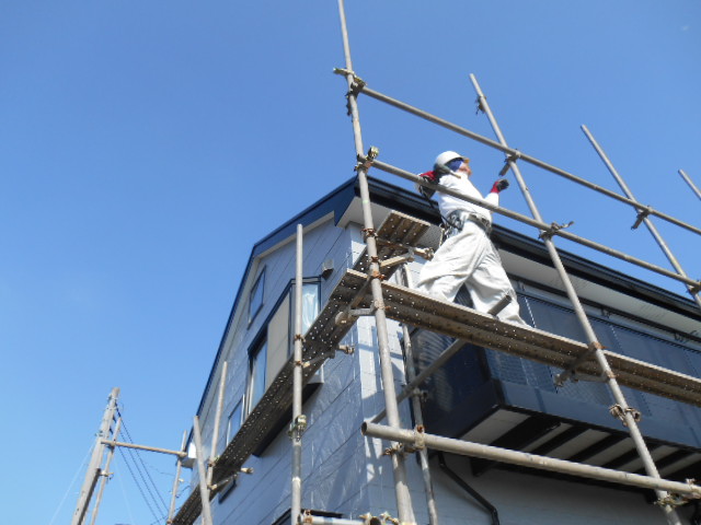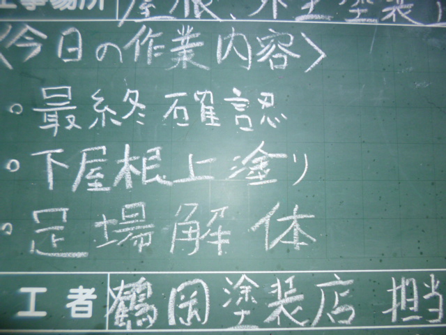 今日で完工になり足場を外しますので、塗り残しや汚れてはいけない箇所に塗料がついていないか、しっかり確認します。