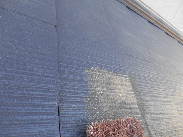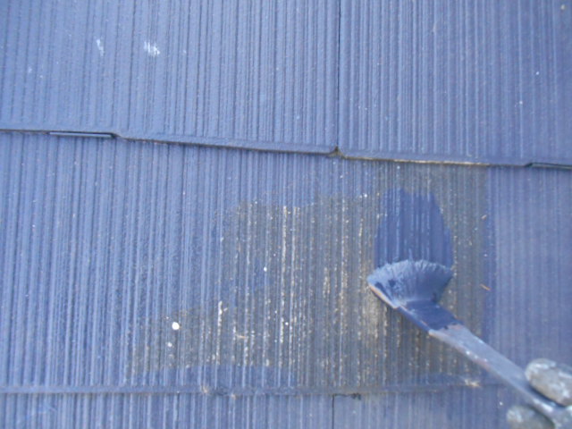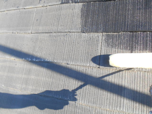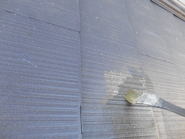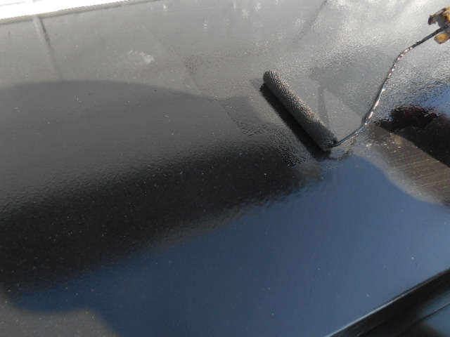 Y様邸は一度、屋根の塗装をしてあるので、溶剤系の塗料を塗ると旧塗膜が溶けて剥離をする恐れがあるので、今回は水性系の塗料を塗る事にしました!!