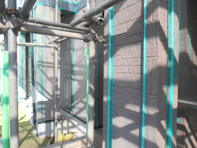 下塗りが乾いたら、タスペーサーと言う縁切り部材を取り付けていきます!