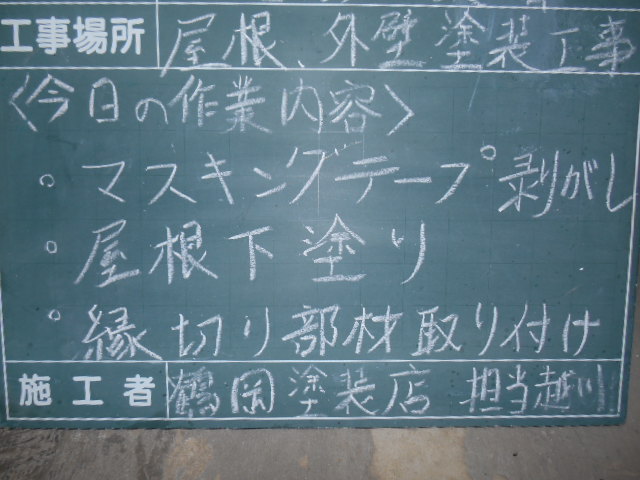 明日は、附帯部下地調整、養生、屋根板金部分錆止めの予定です!!
