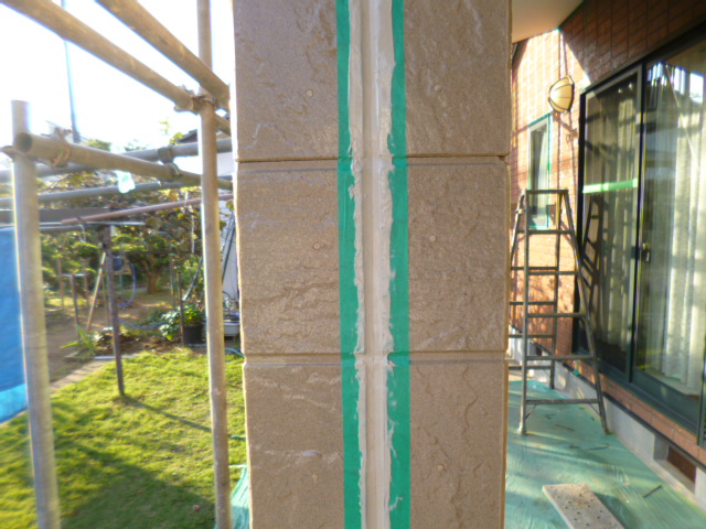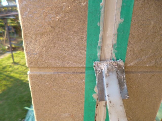 せっかく綺麗に仕上げた壁に、シーリング材が着かない様に目地の両脇やサッシ廻りに、マスキングテープを貼っていきます!
