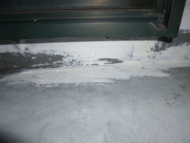 旧塗膜が劣化して塗膜が浮いている箇所をケレン道具を使って剥がし、防水専用のシーリングで処理しました!!