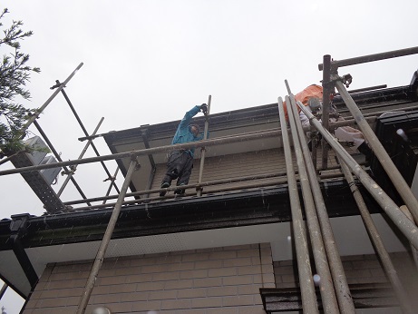 明日は足場を外し終えて、綺麗になった施工後の写真をアップしますので、楽しみにしていて下さい!!