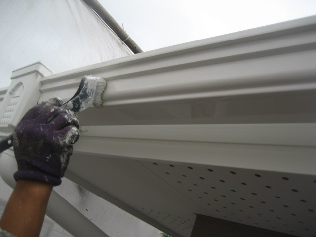 前はクリーム系でしたが今回はホワイトで塗っていきます!!破風板は刷毛とローラーで塗ります!