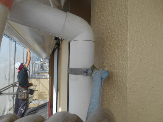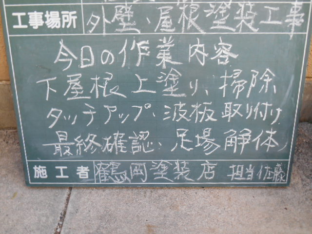 きょうの、作業内容です!きょうは破風板の上塗り。雨樋の上塗り。鉄部の中塗り。下屋根の中塗りです!