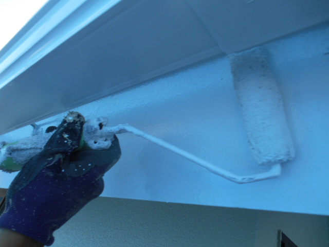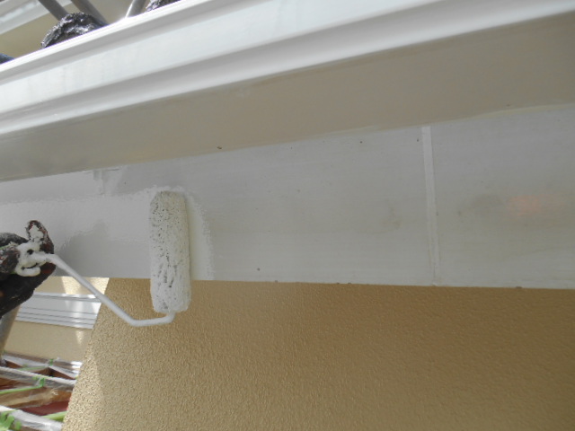 破風板が終わり、つぎに下屋根の中塗りをします!