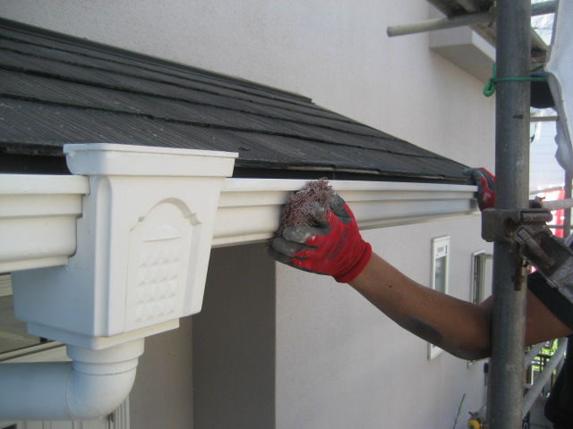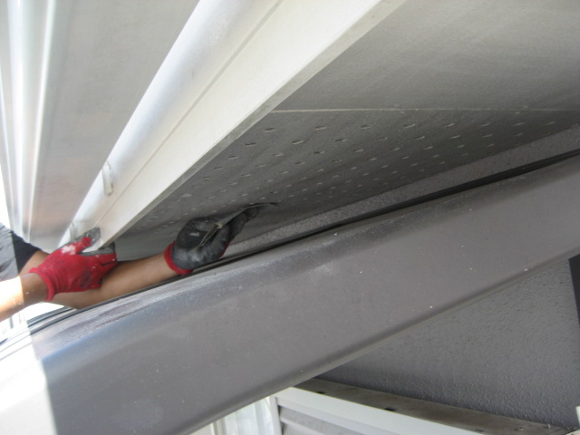 きょうは、破風板の中塗り。雨樋の下塗り。鉄部の下塗り。錆止めです。下屋根の下塗りです!