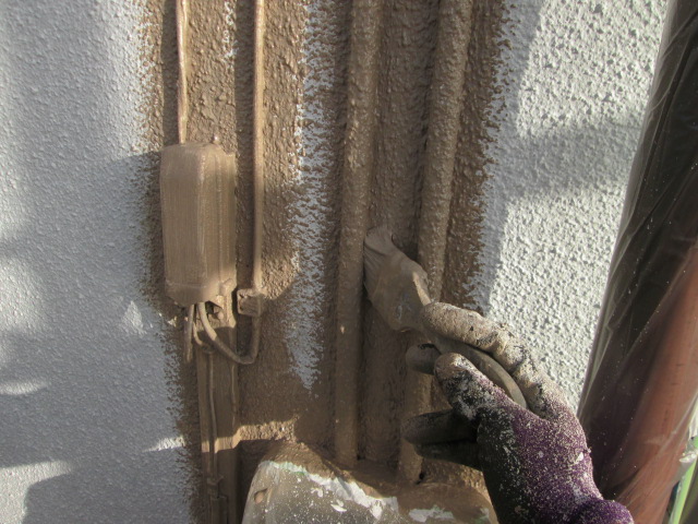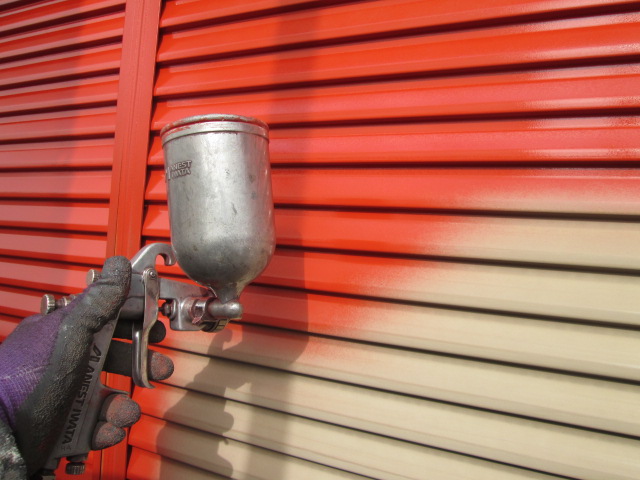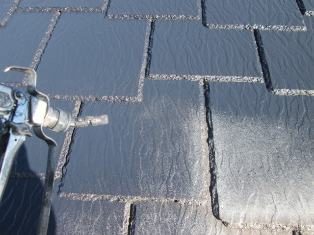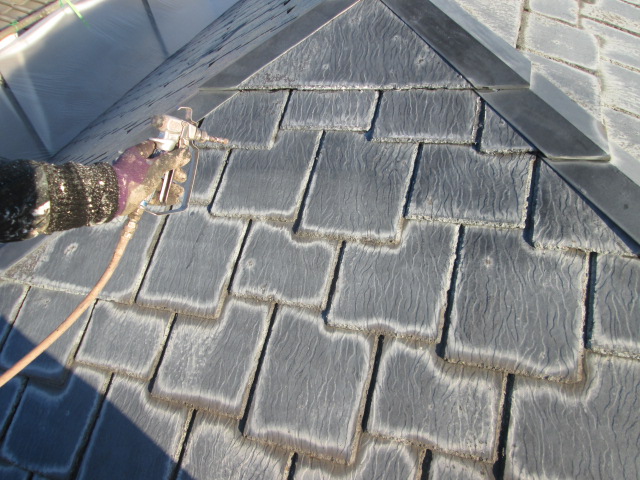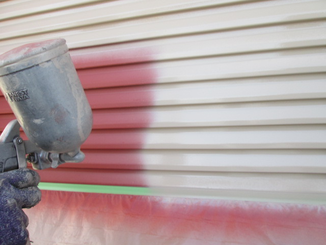 中塗りです。コロニアルの目地が深いので、エアレスガンで吹いて、いきます!
