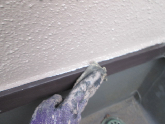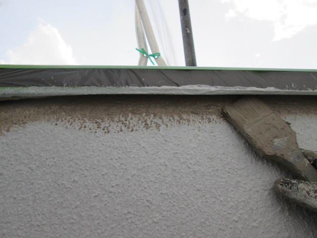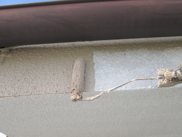 まず始めに外壁上塗りです!中塗りと同じように刷毛でダメ込み、ローラーで仕上げます