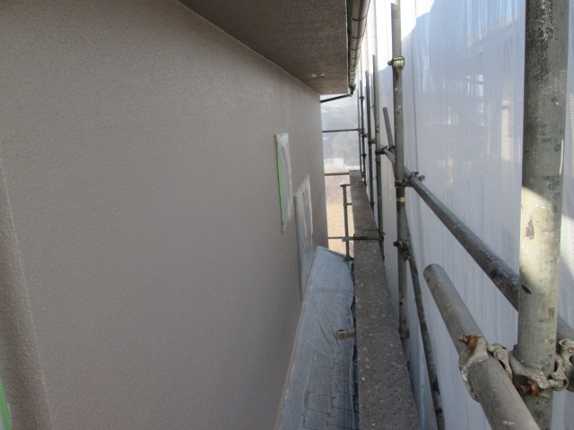 外壁が仕上がりました!!中塗りと色は同じですが、厚みがついて綺麗になりました!(^^)!