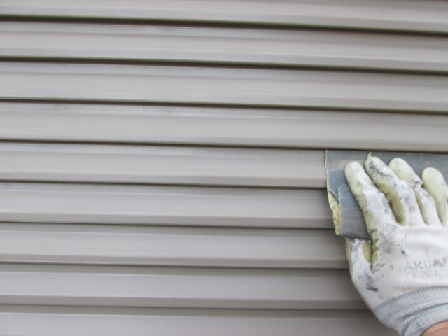 次に雨戸です!サビて塗膜が浮いてるので専用紙ヤスリでこすっていきます!