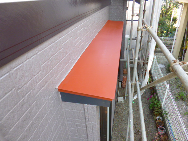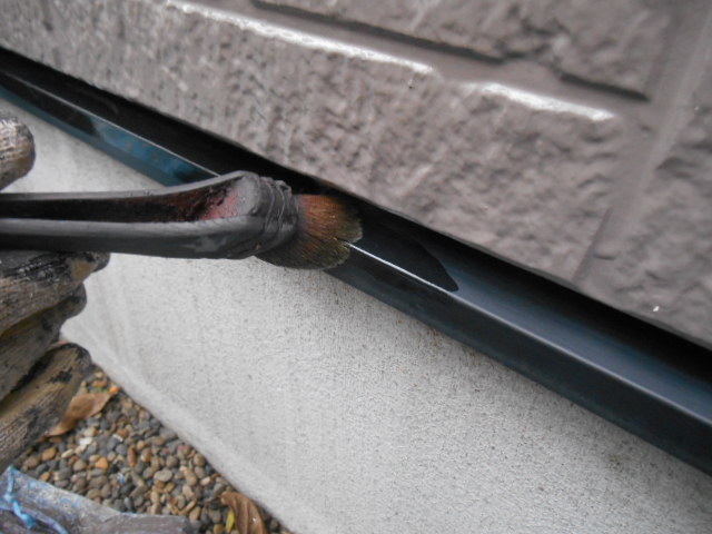 破風は今回板金でしたので、専用のプライマーを塗りました、樋を止めてある金具にもしっかりとプライマーを入れていきます!!