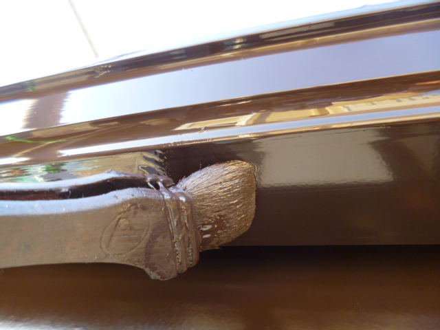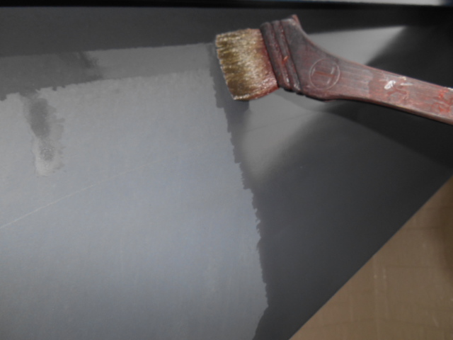 昨日写真を載せる事が出来ませんでしたが、刷毛より下が中塗りをしてある箇所で、刷毛より上が上塗りをしている所です!!