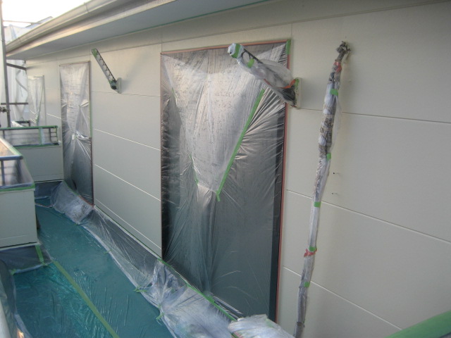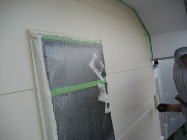 今回は目地と表面を違う色にするといった工法で塗装していきます、色は違いますけど既存のサイディングと同じ塗装です!!