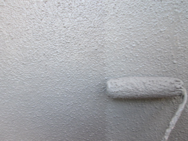 まず始めに外壁上塗りです!中塗りと同じように刷毛でダメ込み、ローラーで仕上げます