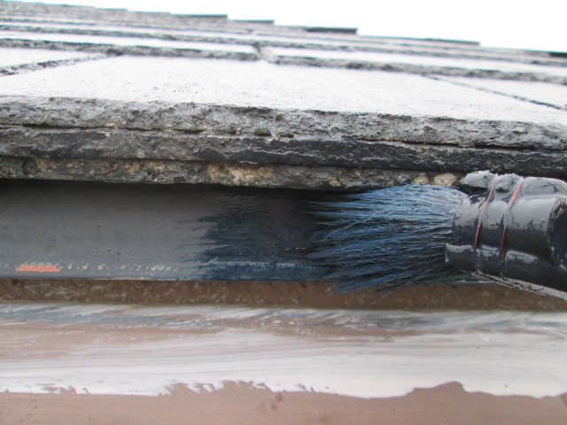 ローラーで塗れない箇所を刷毛でダメ込みます。