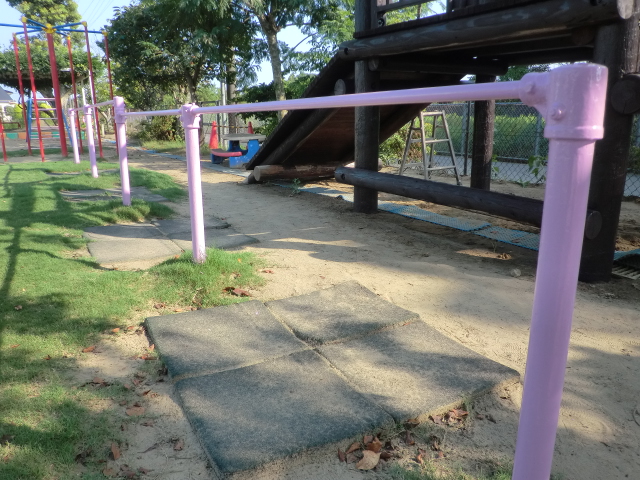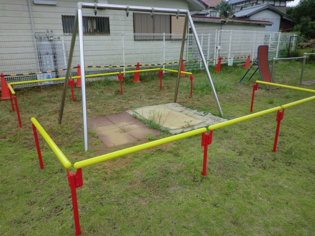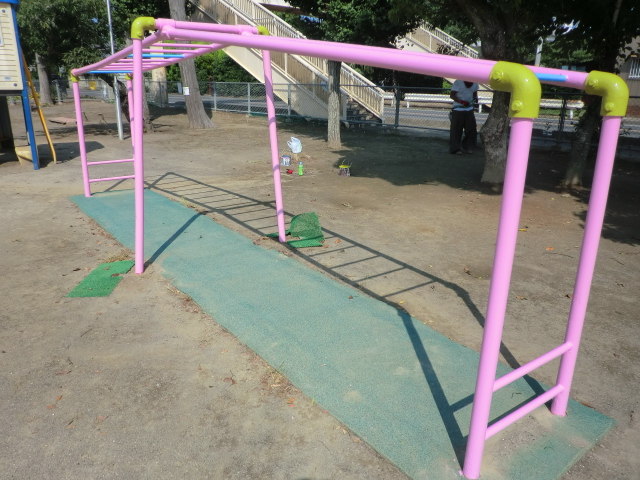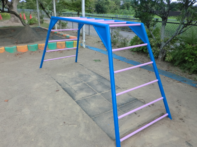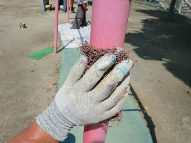 次に、登り棒とブランコの柵の塗装です!