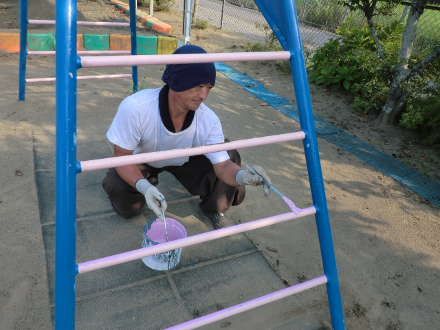 東金市内の3つの幼稚園の遊具の塗装をしました!