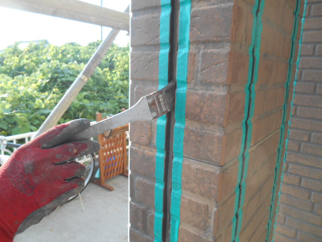 シーリングの撤去が終わりましたら、次にテープを張りシーリング専用プライマーを塗ります!
