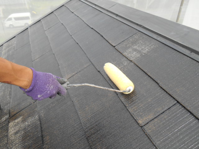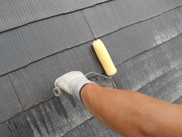 お客様のお家の屋根は、痛みが進んでいますので、もう一度下塗りをいれます!