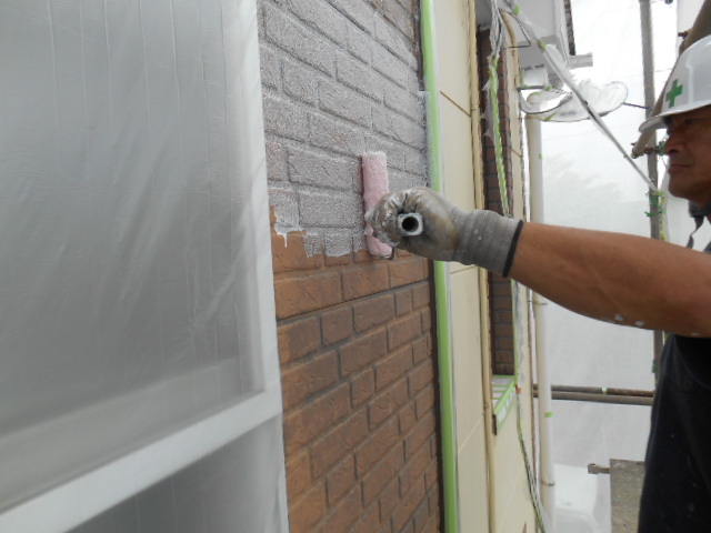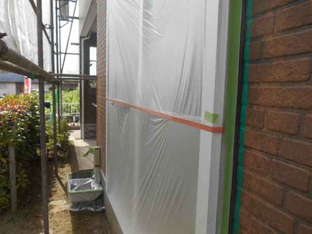 t様のお宅は、ツートンなので色の薄い色から塗装していきます!