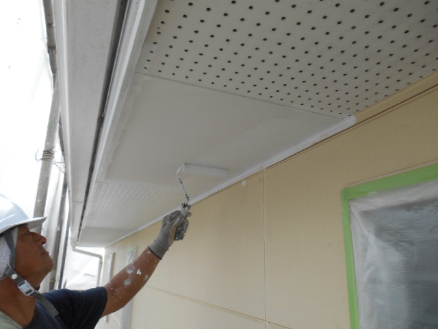 軒天の塗装が終わりましたら、次に、壁の下塗りです!