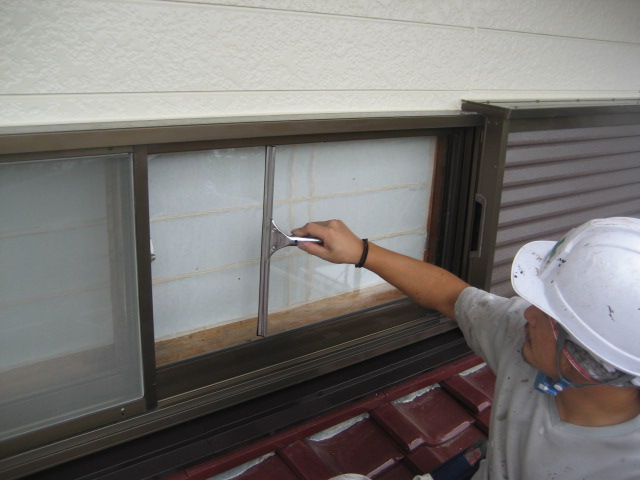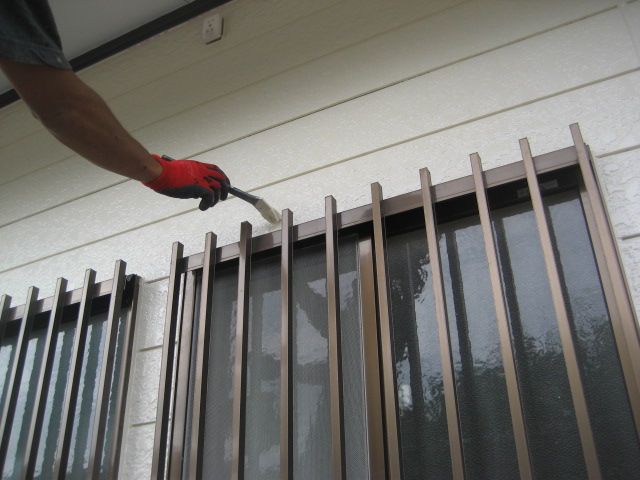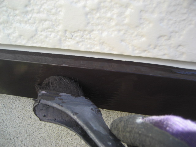 次は鉄部、水切り塗装です!下塗りをして色を2階塗で仕上げます!鉄部の場合状況を見て錆止め、プライマーどちらかを下塗りで使います!