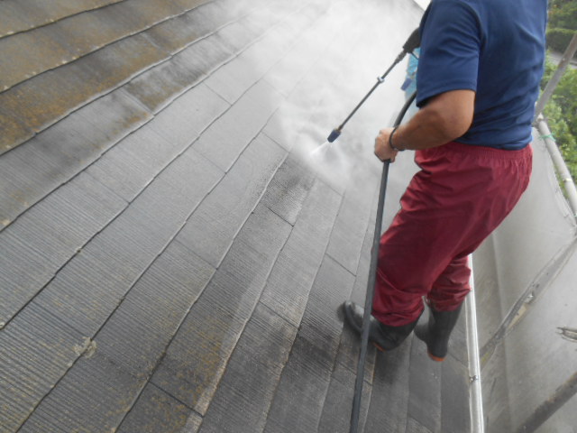 屋根から洗い、壁を洗い、ベランダのなかまで、綺麗に洗います!