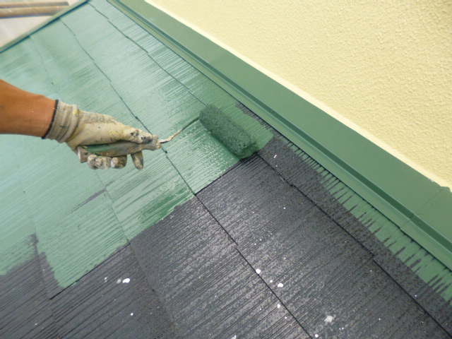 ビニール取りが終わり、ビニールを片付けが終わり、次は、屋根の上塗りを始めようとしたら!