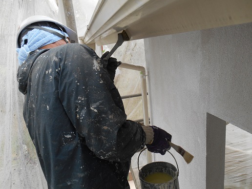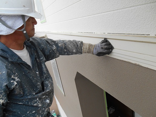 Y様邸は破風と帯が木部ですので、しっかりとケレンをしプライマーを入れていきます!
