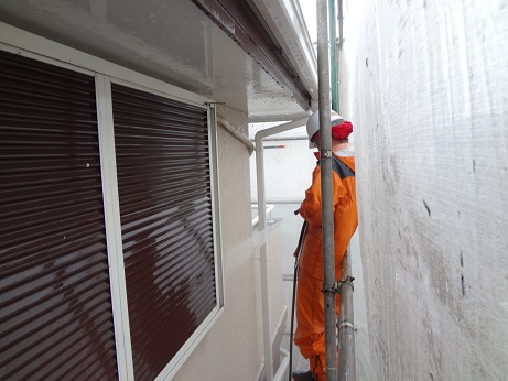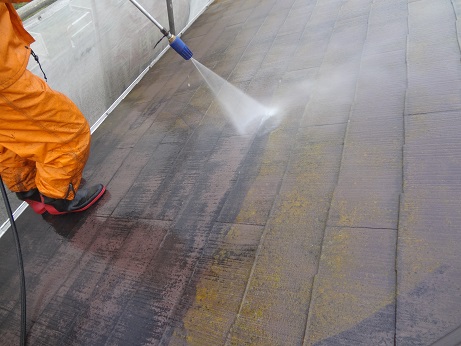 高圧洗浄も下地処理のひとつですここでしっかり苔やゴミ、ほこりなどを落としておかないと後々大変な事になります、まあ女性で言うと洗顔と同じですね!