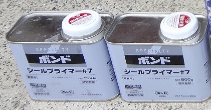次にシーリングを打つ所の両脇にマスキングテープを張り専用のプライマーを塗ります。