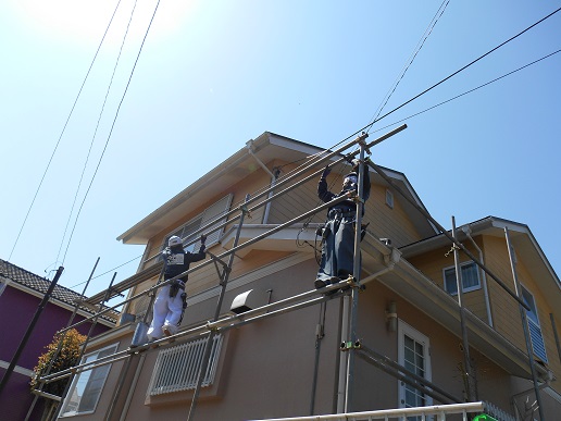 鶴岡塗装店ではご近所周りの挨拶、足場の組み立てから最後まで完全自社施工というスタイルでやっていますので、下請け業者や足場屋さんなどに仕事を丸投げするようなことはありません!