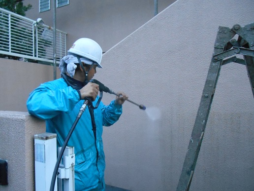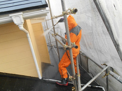 メッシュ張りが終わりましたら最後に高圧洗浄です!