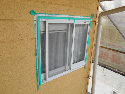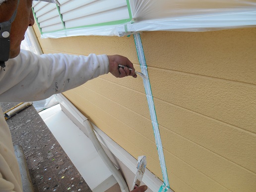 サッシ廻りも同様に打っていきます!(サッシ廻りはサッシに傷をつけてしまう可能性がある為撤去はせず既存の上に増し打ちという方法になります)