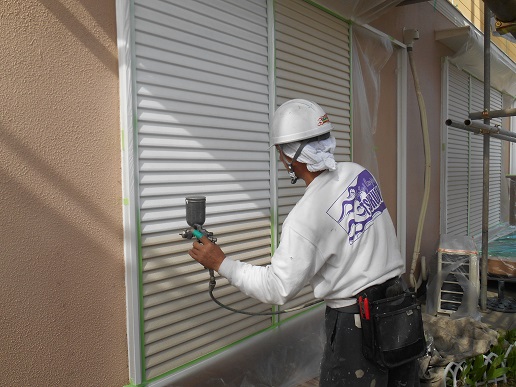 雨戸塗装はカップガンといった機材を使って吹付けていきます!