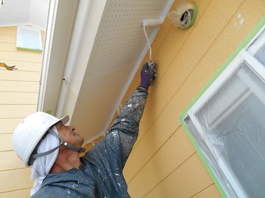 まずは、軒天の塗装から!