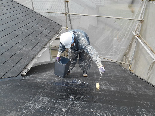 今回は屋根フレッシュを使用するという事で専用の下地材を塗りました!