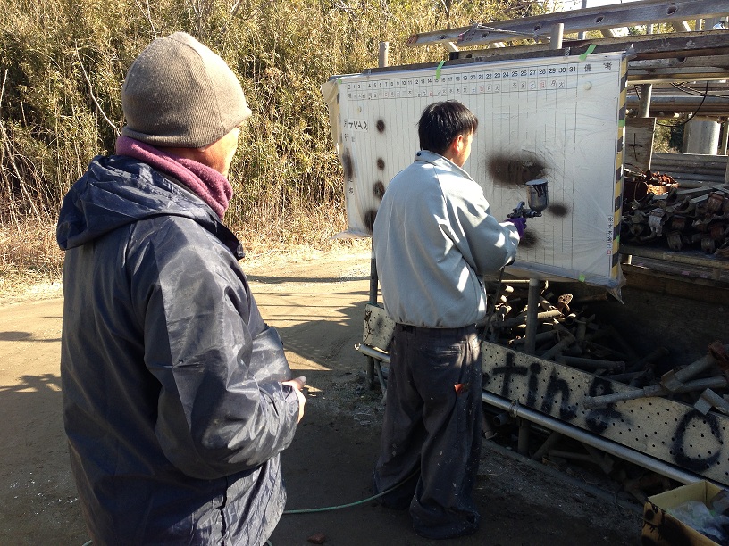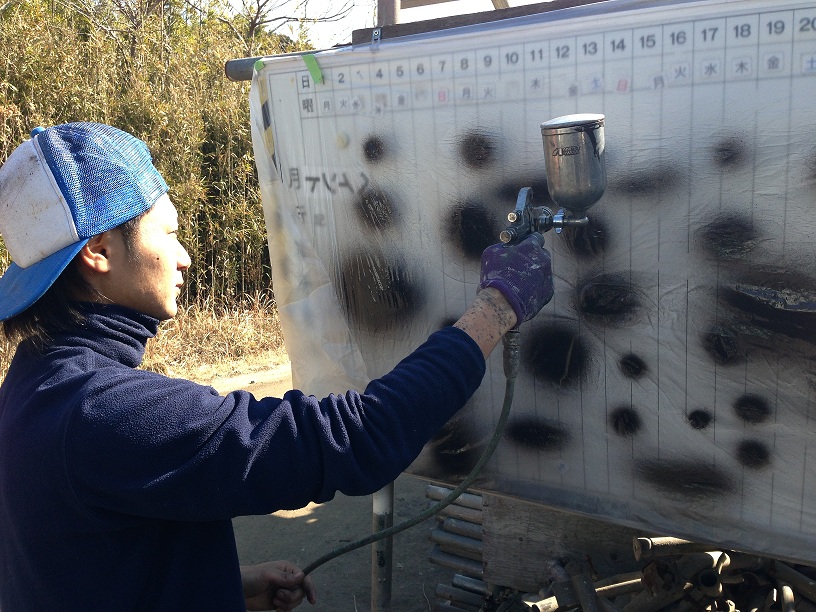 前田さんも吹き付け塗装に真剣です。