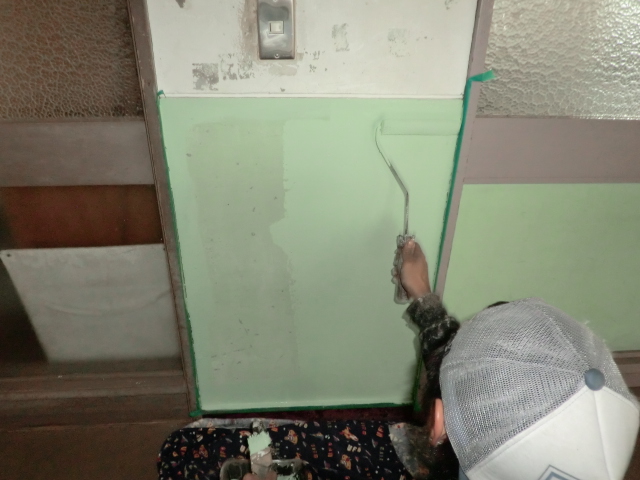廊下の壁は、ツートンになっており、今回下の塗膜の剥がれが気になるということで下だけの塗装となりました。
